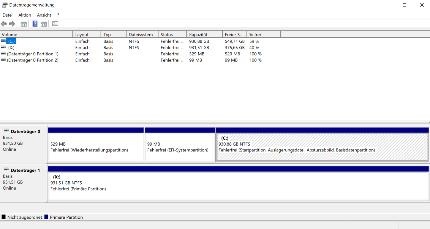 Vielen Dank!Terrier schrieb:Screen von der Datenträgerverwaltung wäre ja nun nicht schlecht.