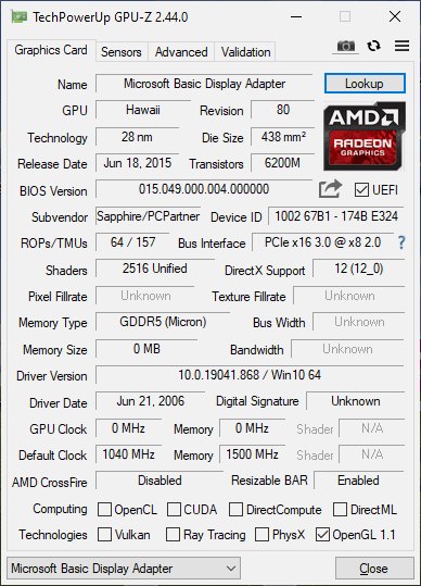 Ein Arbeitskollege hat mir eine R9 390 von Sapphire mit 3 Lüftern + Backplate in der OC Edition Günstig verkauft mit der anmerkung, dass die Treiber nicht in Ordnung seien.