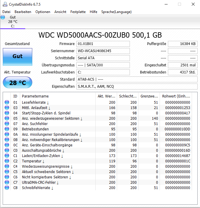 SMART-Werte sind meiner Meinung nach unauffällig, siehe Screenshot.