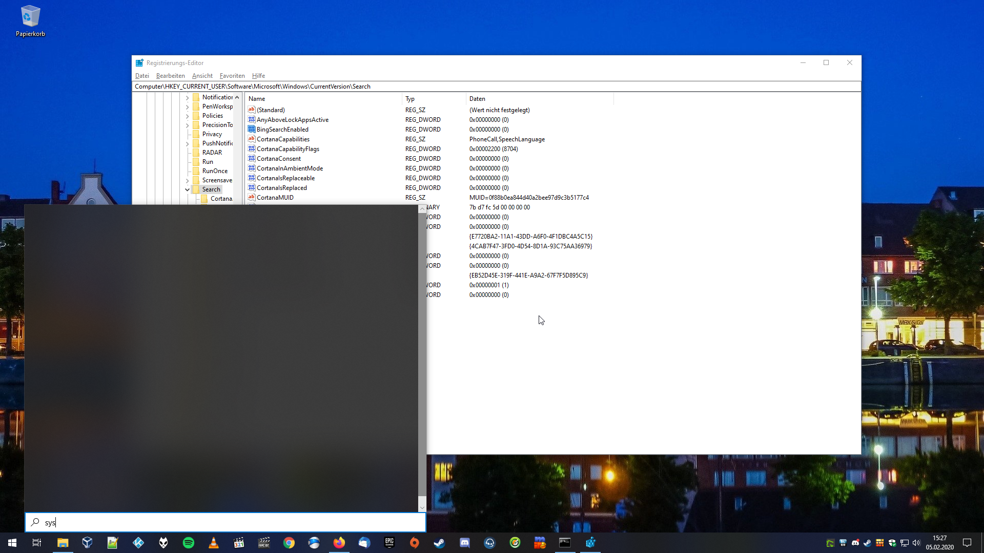 Wirste auch nicht finden, musste als DWORD Wert anlegen.Icetea36 schrieb:BingSearchEnabled