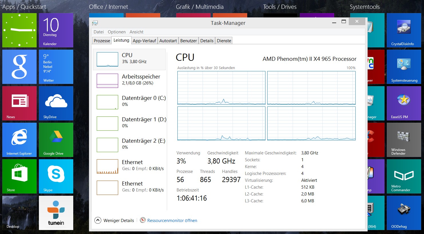 Ich finde die entsprechenden Menüeinträge jedenfalls genauso schnell, wie eine große, bunte Kachel.