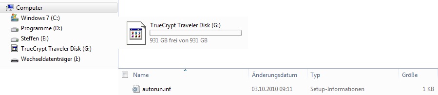 Habe mir nichts dabei gedacht und auf "Überprüfen und reparieren" geklickt! Danach musste ich feststellen, dass der TrueCrypt-Ordner und die Container-Datei verschwunden waren! Lediglich die autorun.inf ist noch vorhanden!