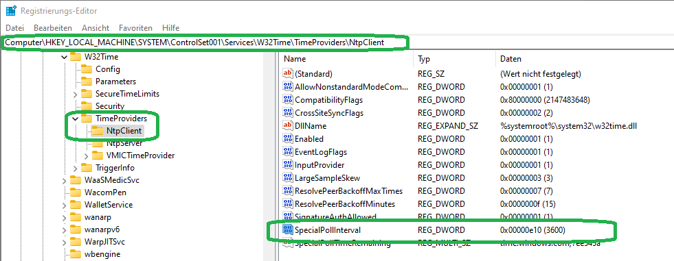 Und als Administrator in der Regedit Specialpoll auf 3600 ( 3600 Sekunden = eine Stunde) eingestellt.