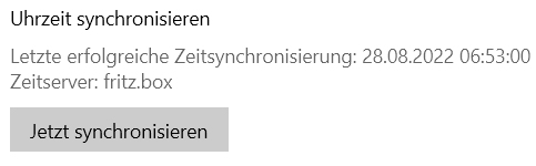Pete11 schrieb:Man muß einmal von Hand synchronisieren, danach funktioniert es wieder (bis zum Ausschalten des Rechners).