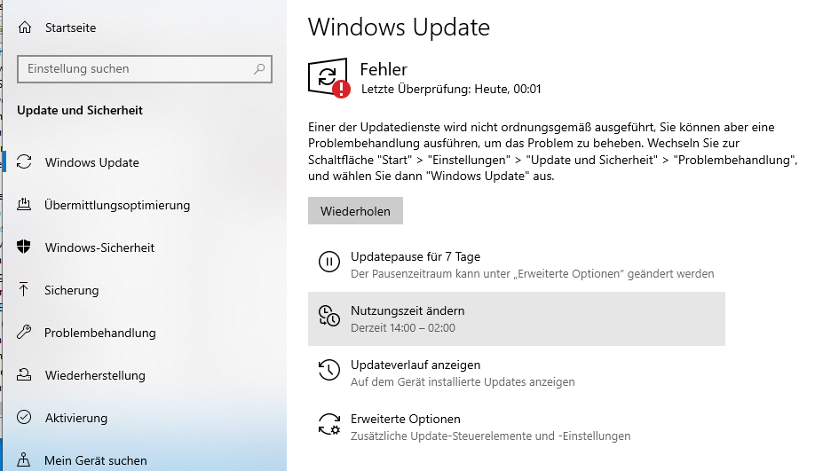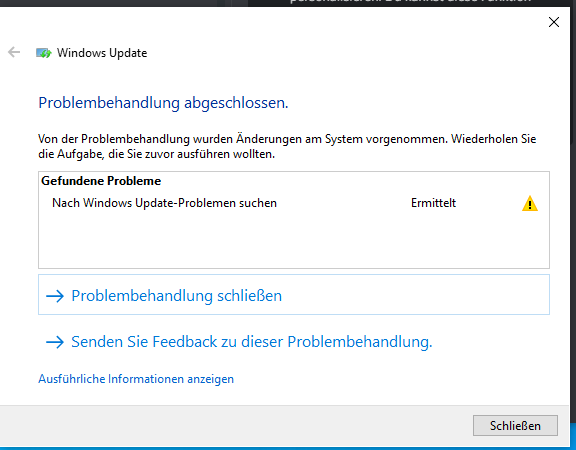 Die Problembehandlung ermittelt zwar ein Problem aber tut nix (Screenshot 3). Mehrmals neugestartet.
