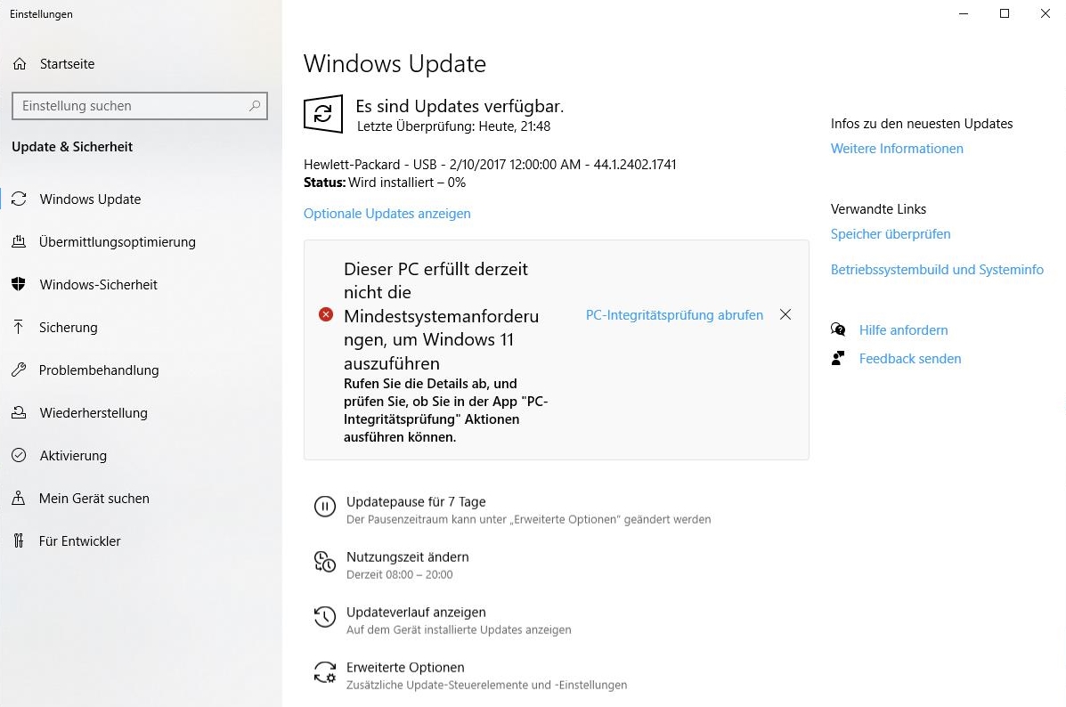 Man kann sehen, dass es sich um ein HP-Update handelt, kann sich also nur meinen Drucker betreffen.