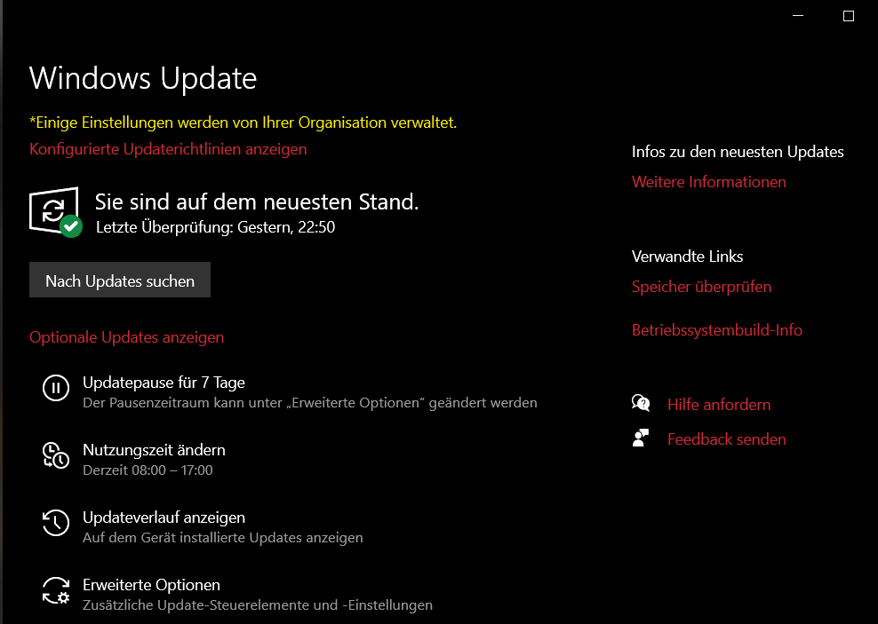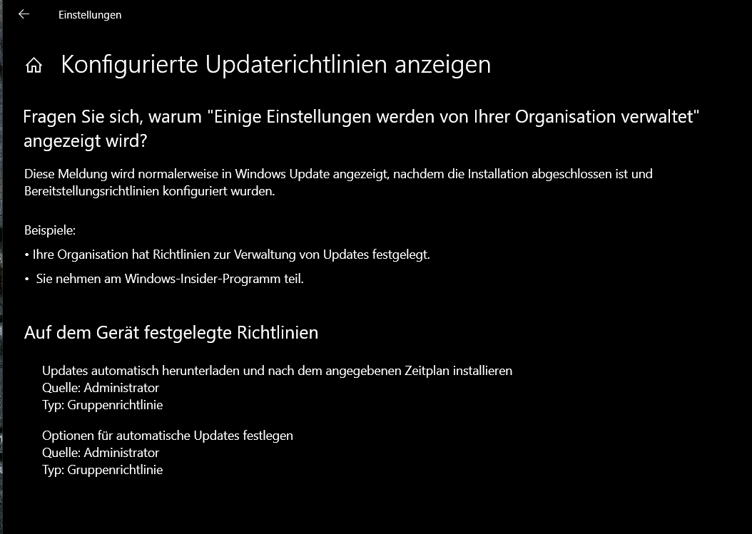 Heute Nachmittag bekam ich ganz plötzlich eine Windows Meldung dass irgendetwas nicht ausgeführt werden konnte. Ich kann den genauen Wortlaut momentan nicht wiedergeben, aber danach sind unter Windows Update folgende Einstellungen manipuliert: