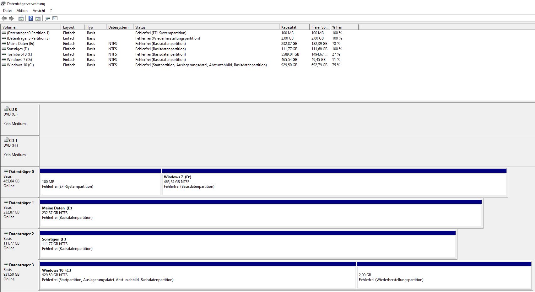 Wenn den Screenshot so sehe, frage ich mich, ob dein PC, mit Windows 10 startet, wenn du alle DatenTräger außer DT 3 abklemmst?