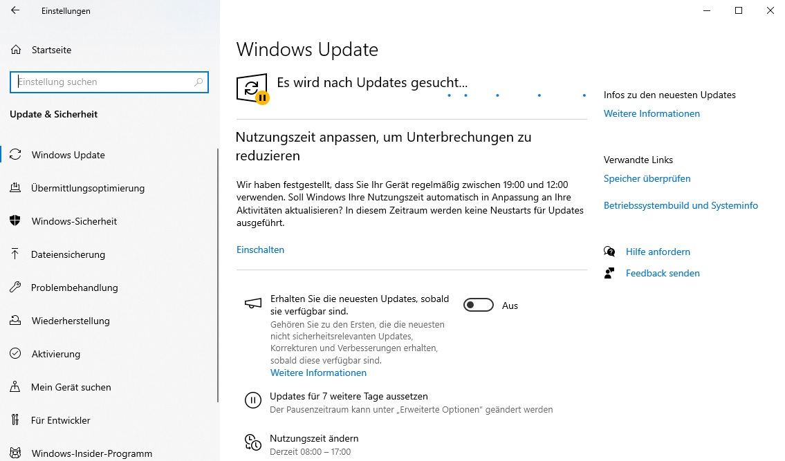 seit gestern fällt mir eine merkwürdige Fehlfunktion unter "Windows Update" auf, zum ersten Mal, seit ich bei Win10 bin (Frühjahr 2020):