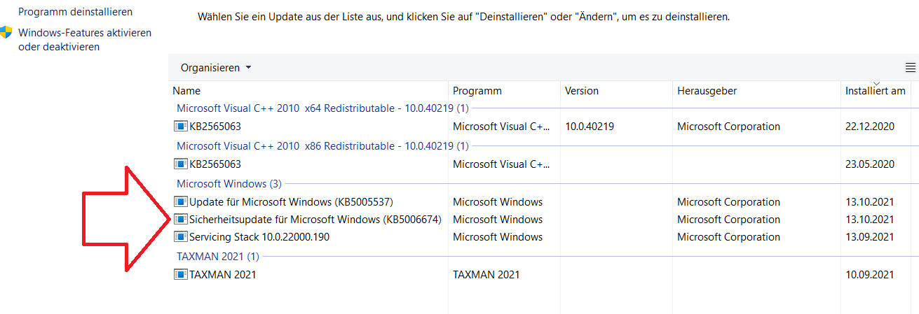 Wer schaut heute noch unter Systemsteuerung > Programme + Features > installierte Updates nach?