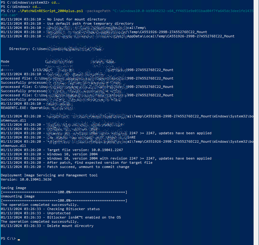 Möchte mal nur drauf hinweisen, dass das 2004er-Script auch mit Windows Server 2022 funktioniert. Da steht zwar was von unknown OS, aber er patcht die WinRE trotzdem und die ist auch im Anschluss auf einer höheren ServiceBuild-Nummer mit Datum von der Patchinstallation und die Recovery-Umgebung funktioniert auch noch^^ (extra nochmal geteset). Die richtige .cab-Datei (im Catalog nach "Safe-OS" suchen und dann das erste "...server operating system..." Update nehmen) muss man natürlich raussuchen.Bob.Dig schrieb:Ich habe nun mal die Script Methode ausprobiert.