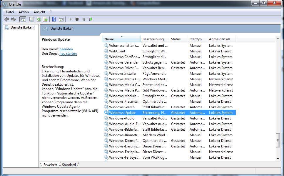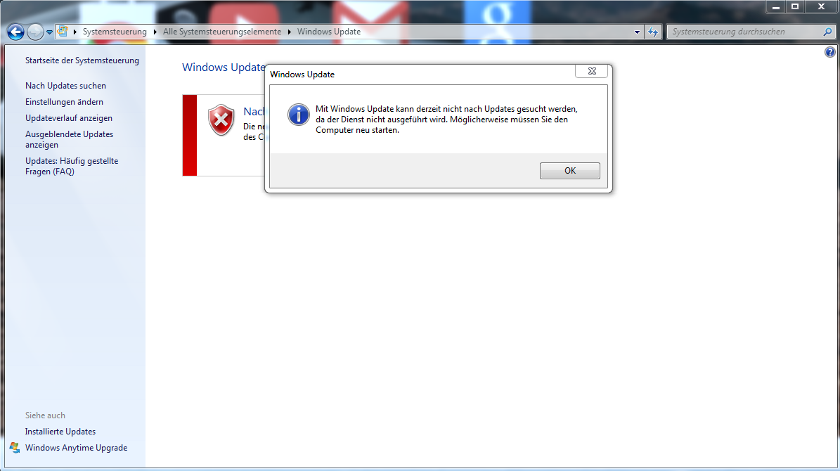 Zu beginn konnte ich noch bei Windows Updates rein gehen, dort kamm dann immer eine Fehlermeldung als ich nach Updates suchen wollte. Jetzt kann man jedoch nicht einmahl mehr zu den Windows Updates rein gehen.