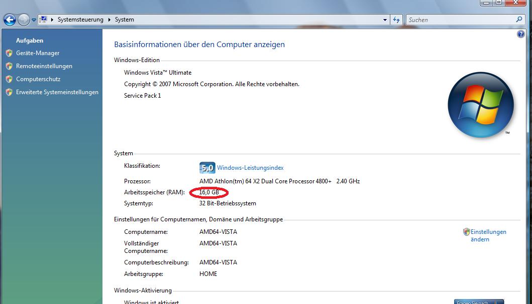 Es gibt nur dieses "Schönheitsproblem" unter Systemsteuerung/System. Deswegen ja die Frage nach dem etwaigen Registry-Key, um es manuell zu korrigieren.