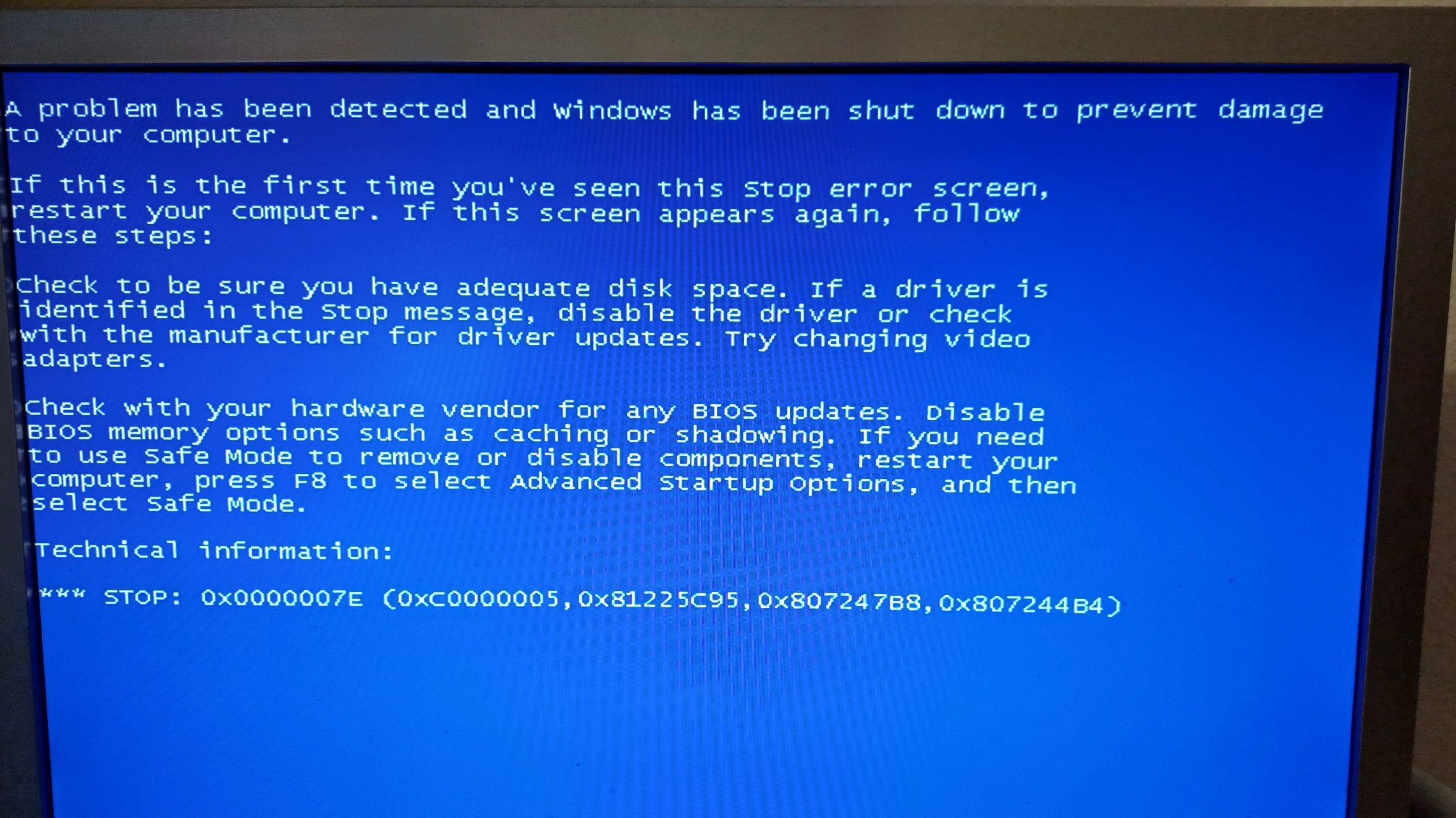 ich wollte auf einem alten Computer (von ca. 2003) Windows Vista installieren. Beim Einlegen auf der Installations-DVD lädt er anfangs ganz normal bis mitten beim Bootscreen ein Bluescreen erscheint (Bild im Anhang). Ich würde gerne wissen, welcher Fehler das ist und was man da machen könnte.