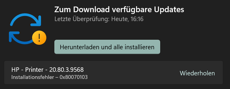 Windows will HP 3634 aktualisieren, scheitert aber.