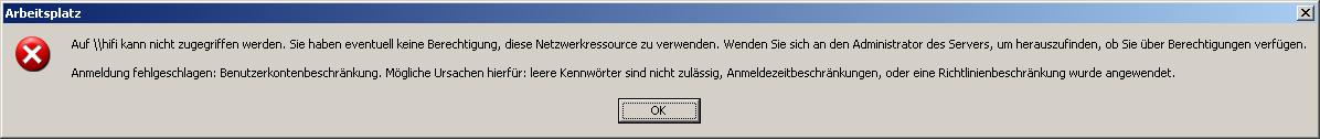 Windows XP hingegen findet den Windows 7-PC, beim Anklicken des PCs in der Netzwerkumgebung erfolgt jedoch der unten angehängte Fehler