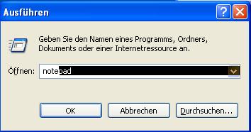 Ich geh auf Start -> Ausführen und schreibe dann dort hinein: