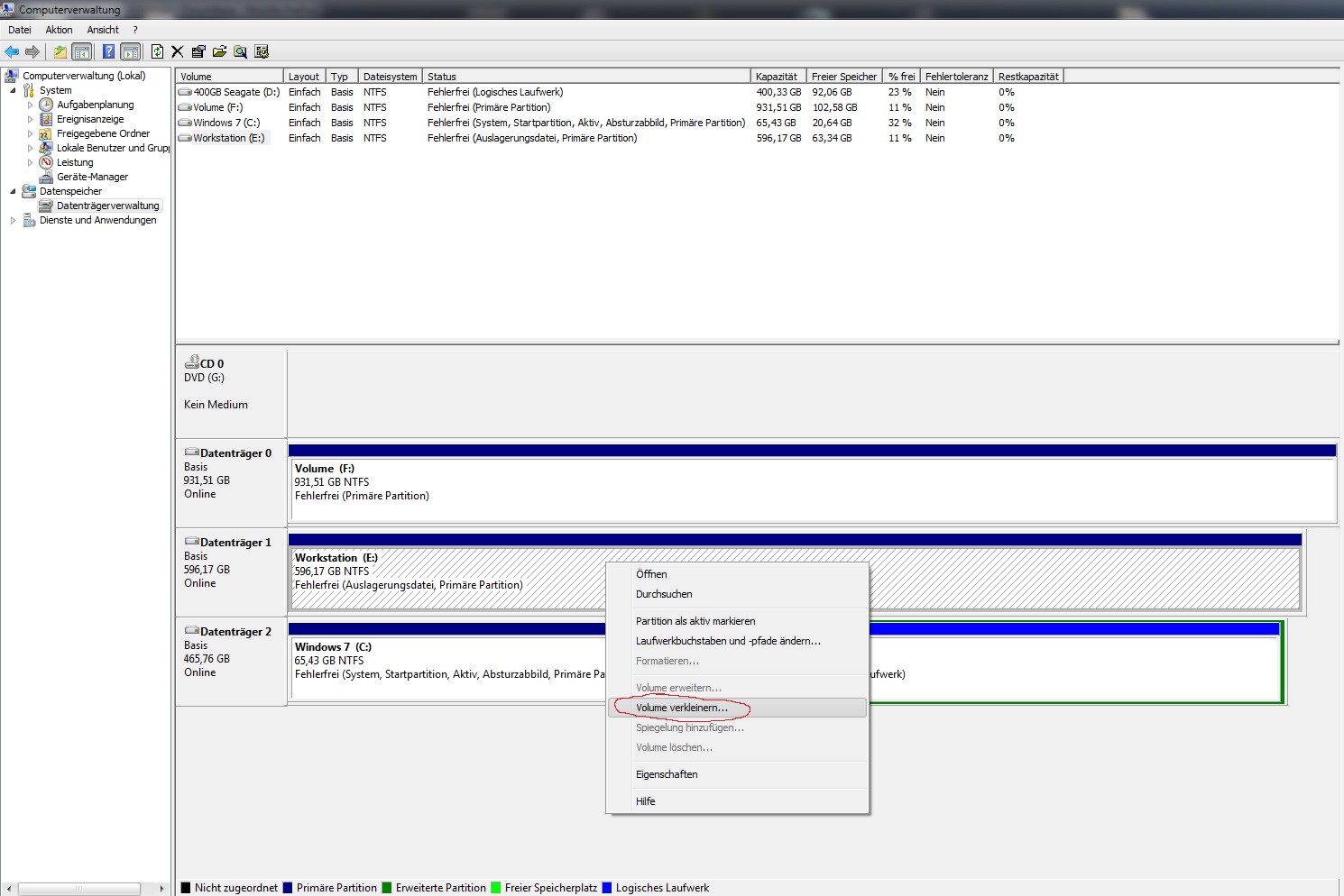 Leider wurde bei der XP Installation übersehen, mehrere Partitionen anzulegen.