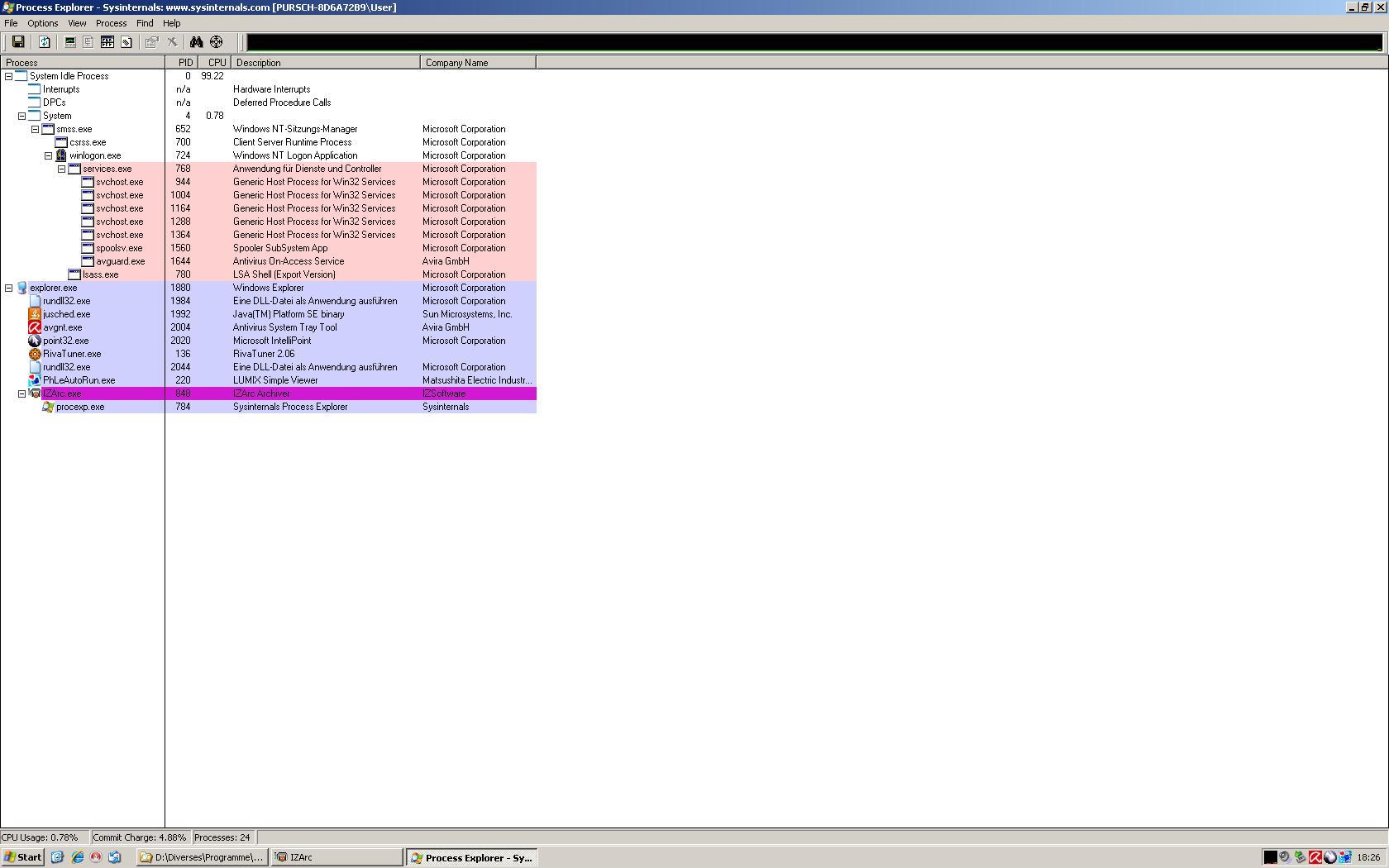 Beim Windows-Startup fährt der Rechner normal hoch, der Desktop erscheint. Dann "verharrt" der Rechner ca. 30 Sekunden, dann hört man wie ein DVD-Laufwerk anläuft (in einem von beiden ist immer eine Spiele-DVD drin), der Scanner sich anmeldet und dann kann man erst Programme starten. Vorher geht nix (ausser dass ich Process-Explorer sogar starten kann..). Müßte nicht der Scanner (USB) sich vorher beim Start hochfahren (wie auch die USB-Maus etc.)