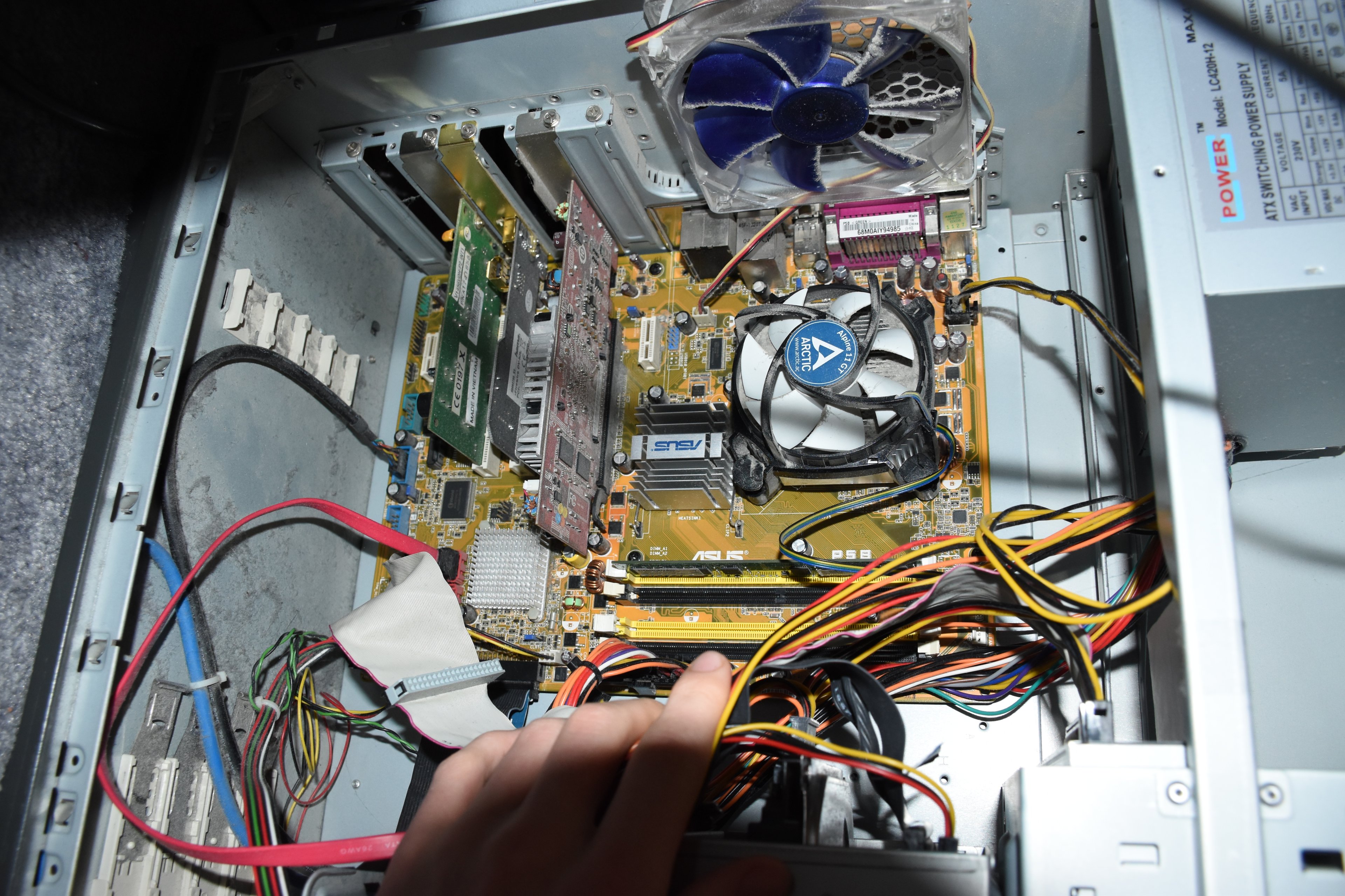 Man schraubt den Lüfter ab und säubert ihn und den Kühler (Küchenpapier, Glasreiniger).
