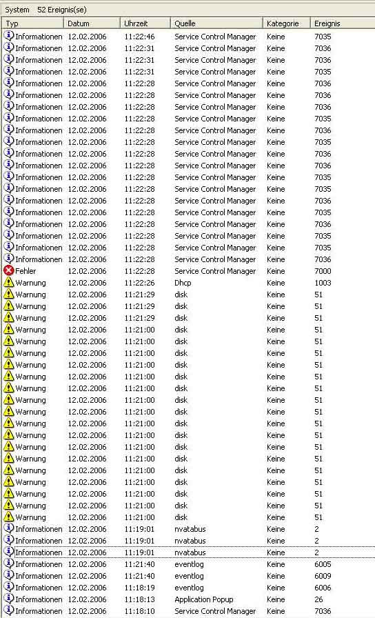 Was steht bei dir in der Ereignisanzeige ?