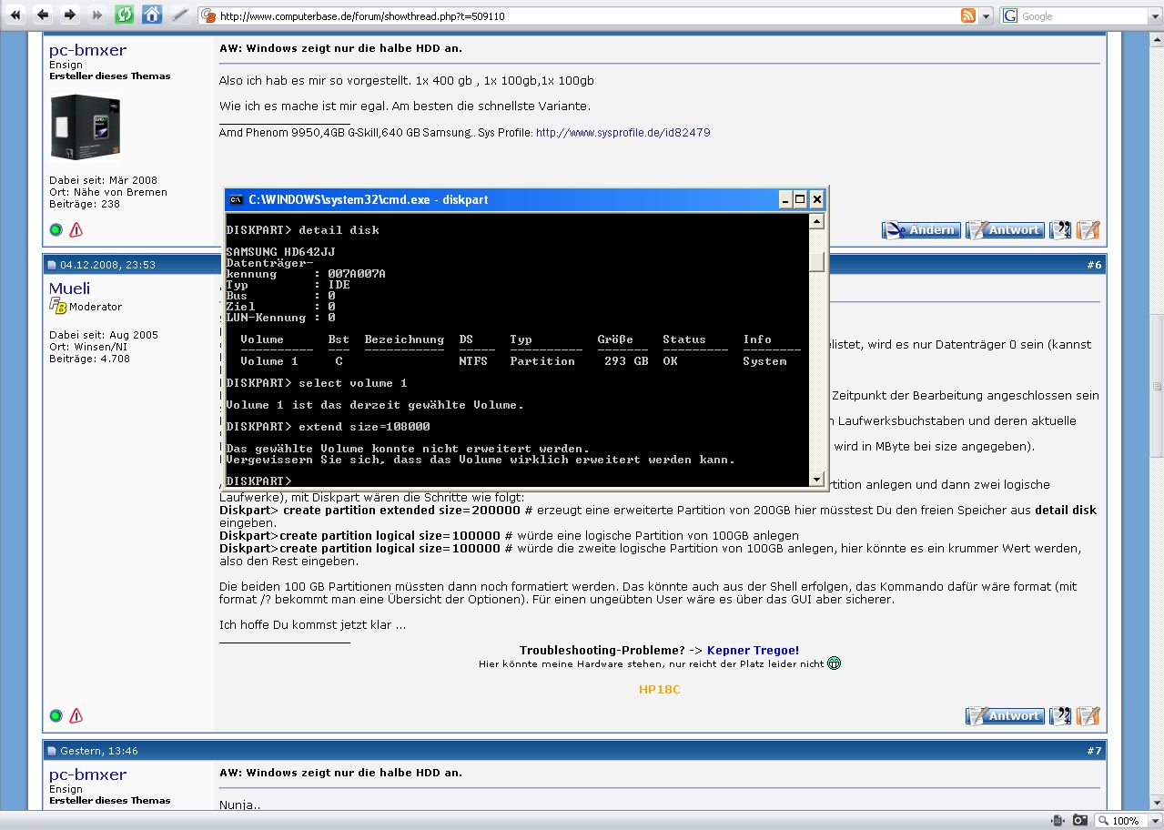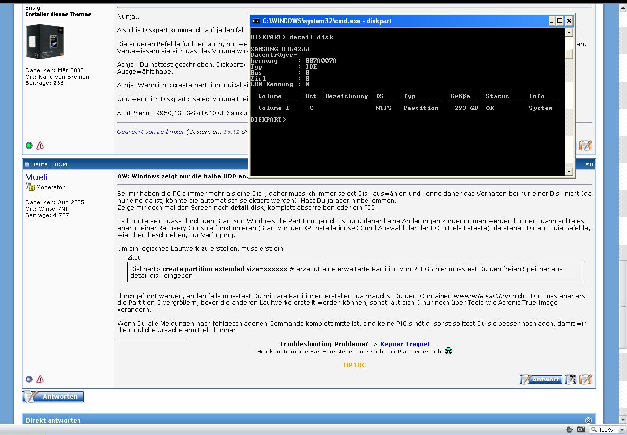 Wollte die HDD vor der Windows instalation aufteilen. In 2 Teile. Jeweils 300 GB.