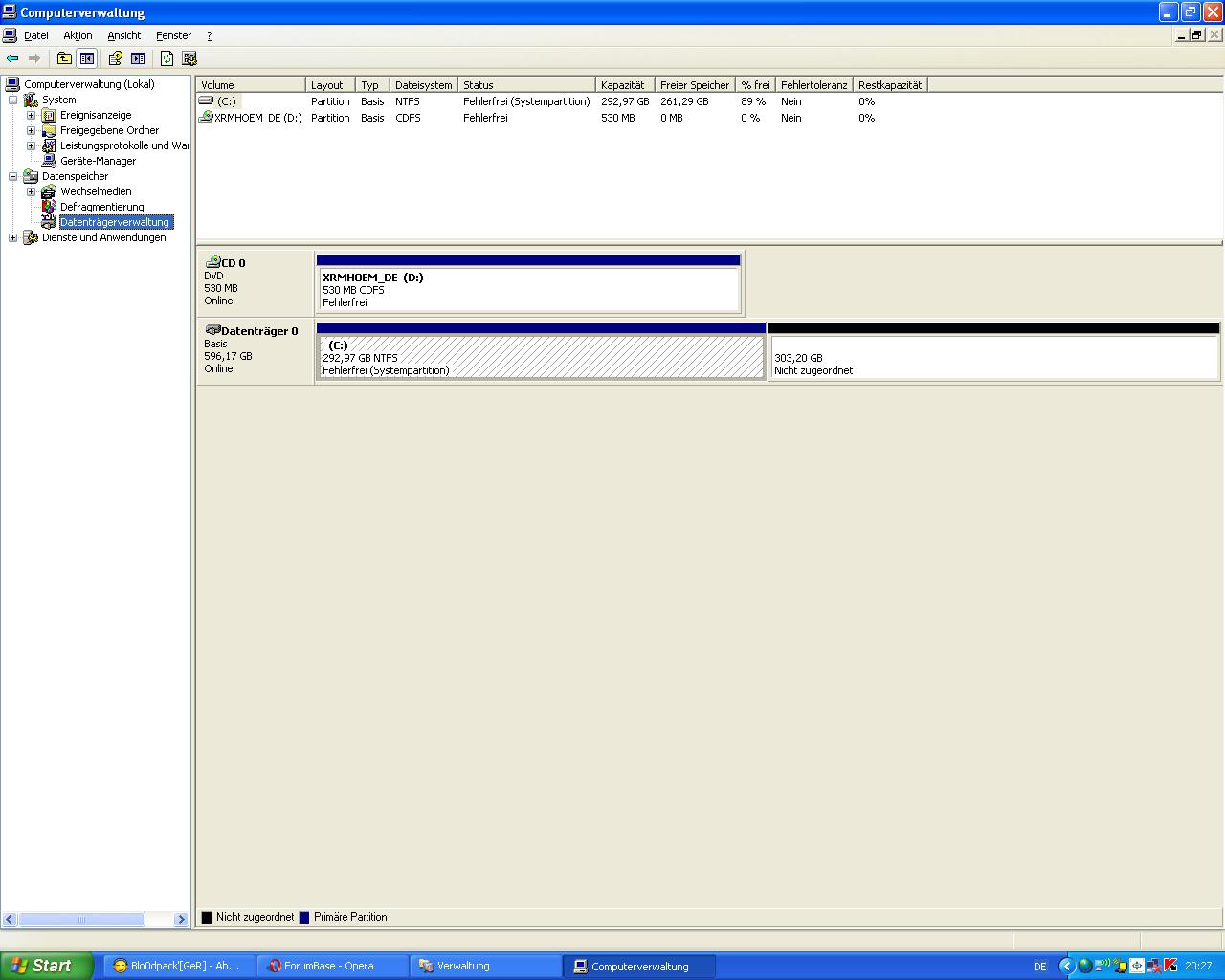 Achja. Noch zu erwähnen. Die Festplatte wird überall als 640 GB angezeigt. Nunja 596 GB. Halt nur nicht im Arbeitsplatz. Dort ist nur die C mit 300 gb.