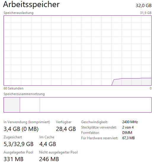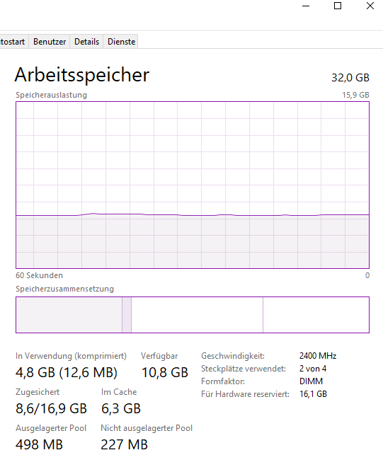 Habe den Rechner schon 2x erfolglos neu gestartet. CPU-Z erkennt den RAM korrekt, und Windows zeigt ja auch 32GB an, aber effektiv nur 16GB.