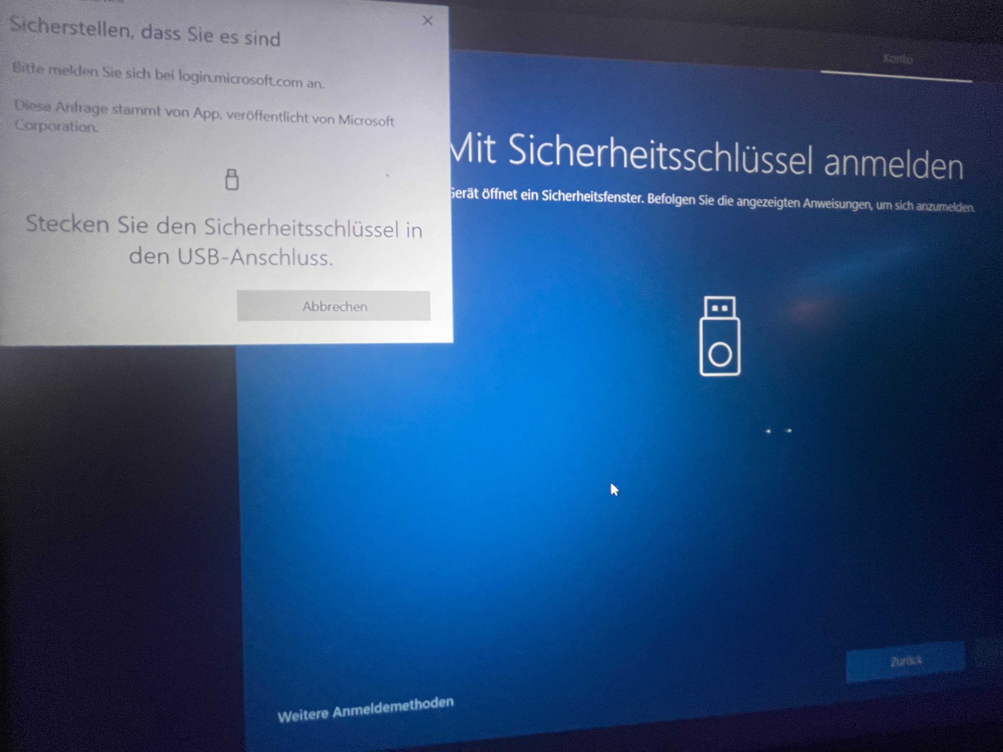 Jetzt fragt der mich nach einem Sicherheitsschlüssel.