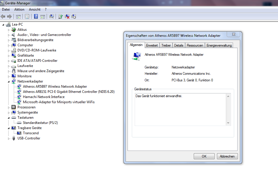 Denn der PC hat eine IP und bekommen und somit dürfte es alles funktionieren.