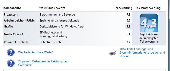 Mit Treiber sind es ca. 4Punkte im Leistungsindex - ausreichend!