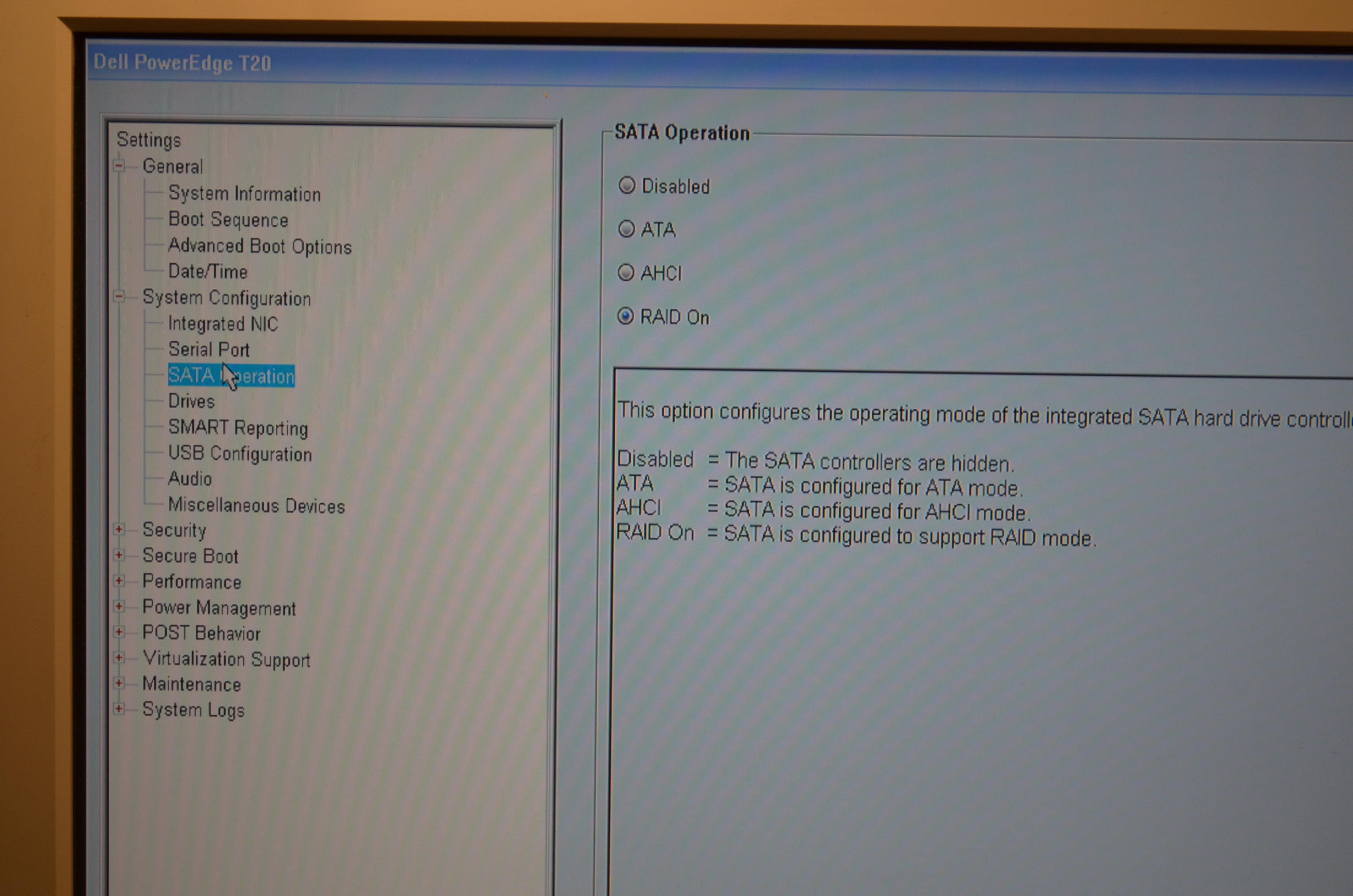 Situation Ich habe einen Dell PC Poweredge T20. Dieser Stand im Bios bei der installation auf Raid statt auf ahci.