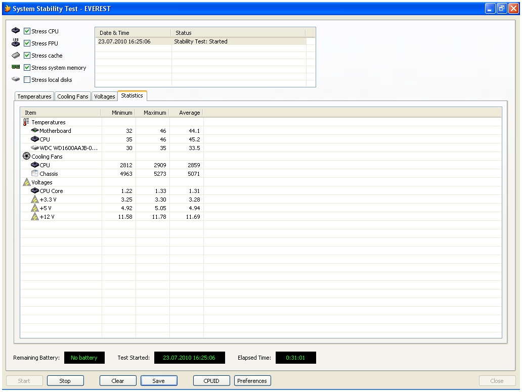 Der wurde gern mal bis 85° Celsius heiss, aber er lief dabei stabil.