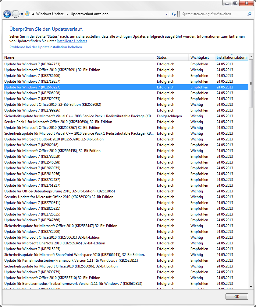 Hat Windows 7 es nicht kaptiert, dass ich bereits diese Updates mit dem Update Pack installiert habe oder kann es sein, dass die darin nicht enthalten sind. Was komisch wäre, denn in dieser Liste von heute sind ja viele uralte Updates dabei, wesentlich älter als Mai 2013