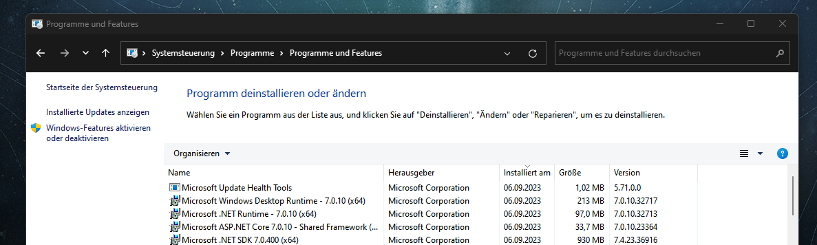 Auch eine "Reparatur" über die Systemsteuerung und auch eine komplette Deinstallation und manuelles Neu-Installieren (egal ob über die .exe oder den von Microsoft empfohlenen winget-Befehl) führten zum selben Ergebnis...