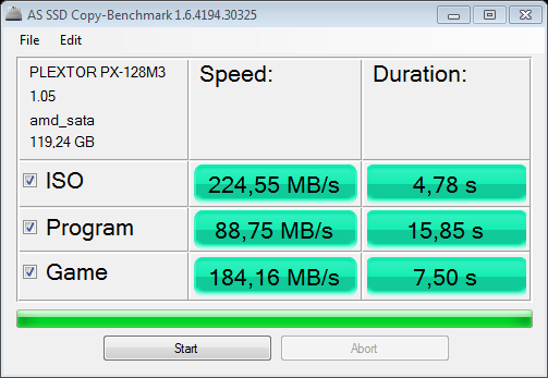 Mehr als die C300 schafft kaum eine SSD, zumindest lesend. Die Vertex4 packt das vielleicht, aber die würde ich mir trotzdem nicht kaufen. Meine C300, Plextor M3 und Samsung 830 an AMD SB850 (890FX Chipsatz mit PIIx6) habe ich Dir mal zum Vergleich angehängt. Danke jedenfalls schon mal.