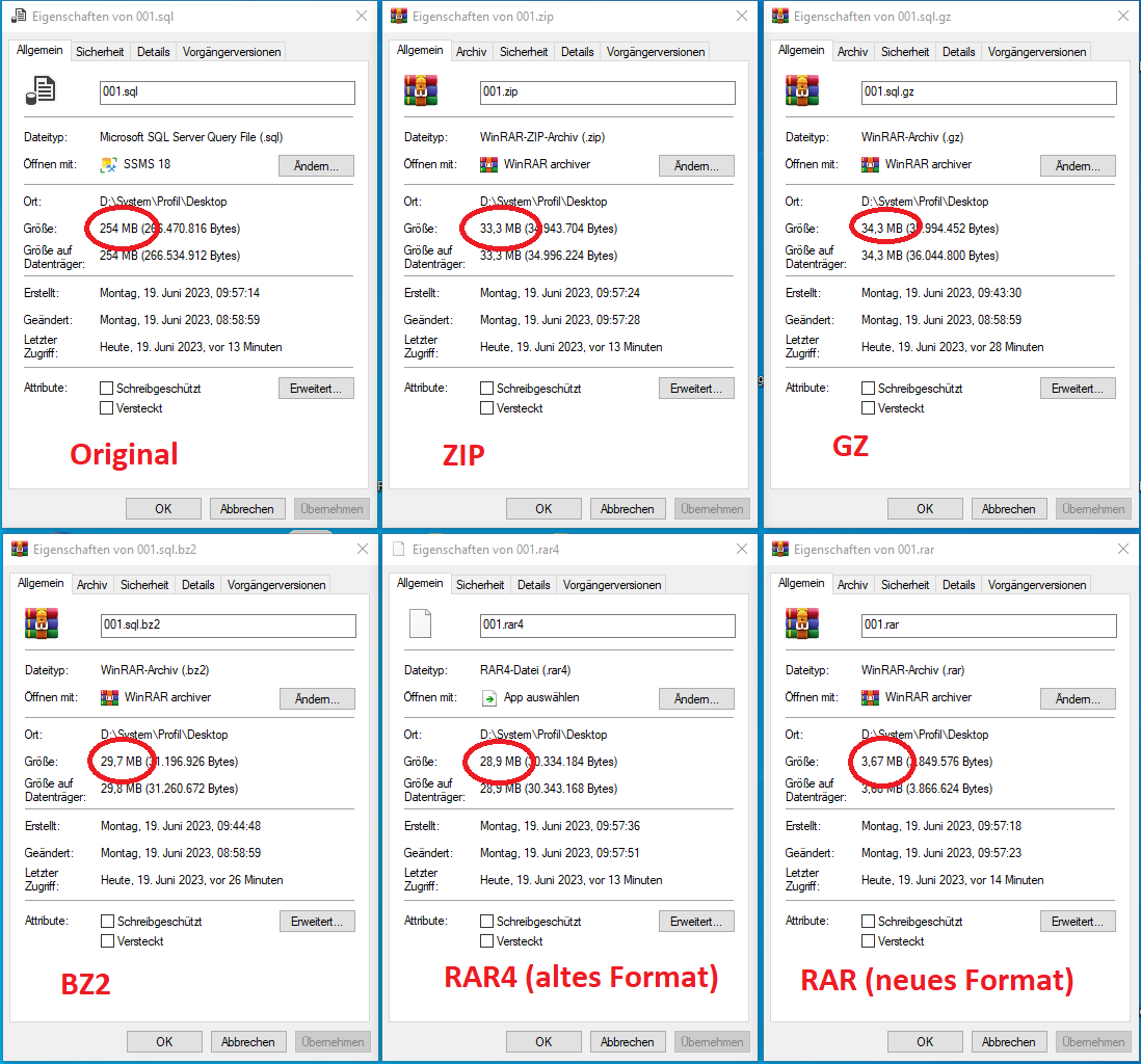 Hab mal aus Jux und Dollerei einen kleinen Vergleich gemacht mit einem der Backups: