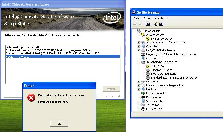 Für die "Probleme" im Gerätemanager ist ja eindeutig der Chipsatztreiber verantwortlich oder nicht! Nur leider bricht die Installation schon sehr früh nach dem ersten Punkt ab (BILD) !