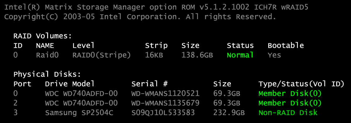 Ich weiss, dass ich bei der Inst. F6 drücken muss, dann noch Z und eine Diskette mit den RAID-Treibern meines Board-Herstellers brauche. Hier geht's jetzt los mit meinen Problemen...