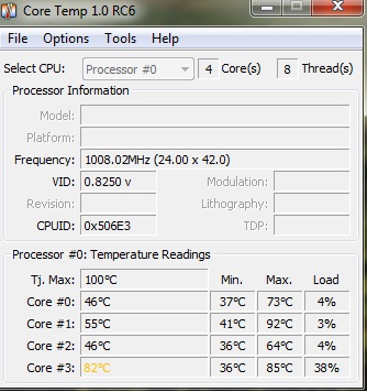 Zumal Core Temp ja nichtmal die Plattform bestimmen kann! versuche mal ein anderes Programm und dann kannst du das gut auf dem Desktop mit Prime 95 testen!Zumindest die CPU, welche Grafikkarte ist verbaut?