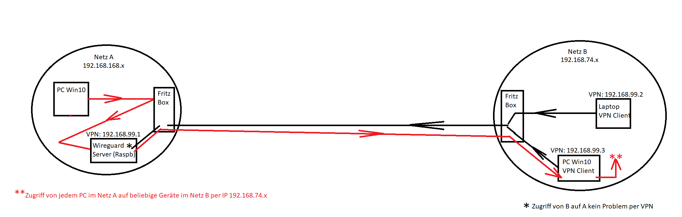 ich möchte gern meine Wireguard VPN Verbindung von beiden Seite aus nutzen, dazu habe ich etwas gemalt (siehe Bild)