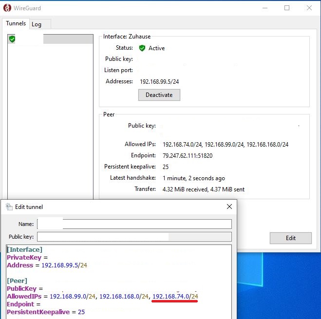 Nu muss man aber dem jeweiligen VPN-Gateway noch beibringen, dass es eben als Gateway zum anderen Netzwerk fungiert. Das erfolgt in der Regel über die VPN-Konfiguration (bei OpenVPN zB mit route bzw iroute oder eben mit push route). Bei wireguard weiß ich das mangels persönlicher Erfahrung damit leider nicht wie genau das da funktioniert. So oder so müssen sich VPN-Server und -Client aber darüber austauschen welche Subnetze sie bedienen. Gegebenenfalls muss man das bei wireguard vielleicht sogar über manuelle Einträge in die Routing-Tabelle umsetzen.