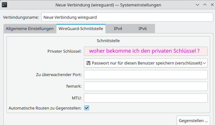 Nun versuchte ich WG auf einem ArchLinux Rechner + KDE Plasma einrichten und habe Null Durchblick über die Vorgehensweise.