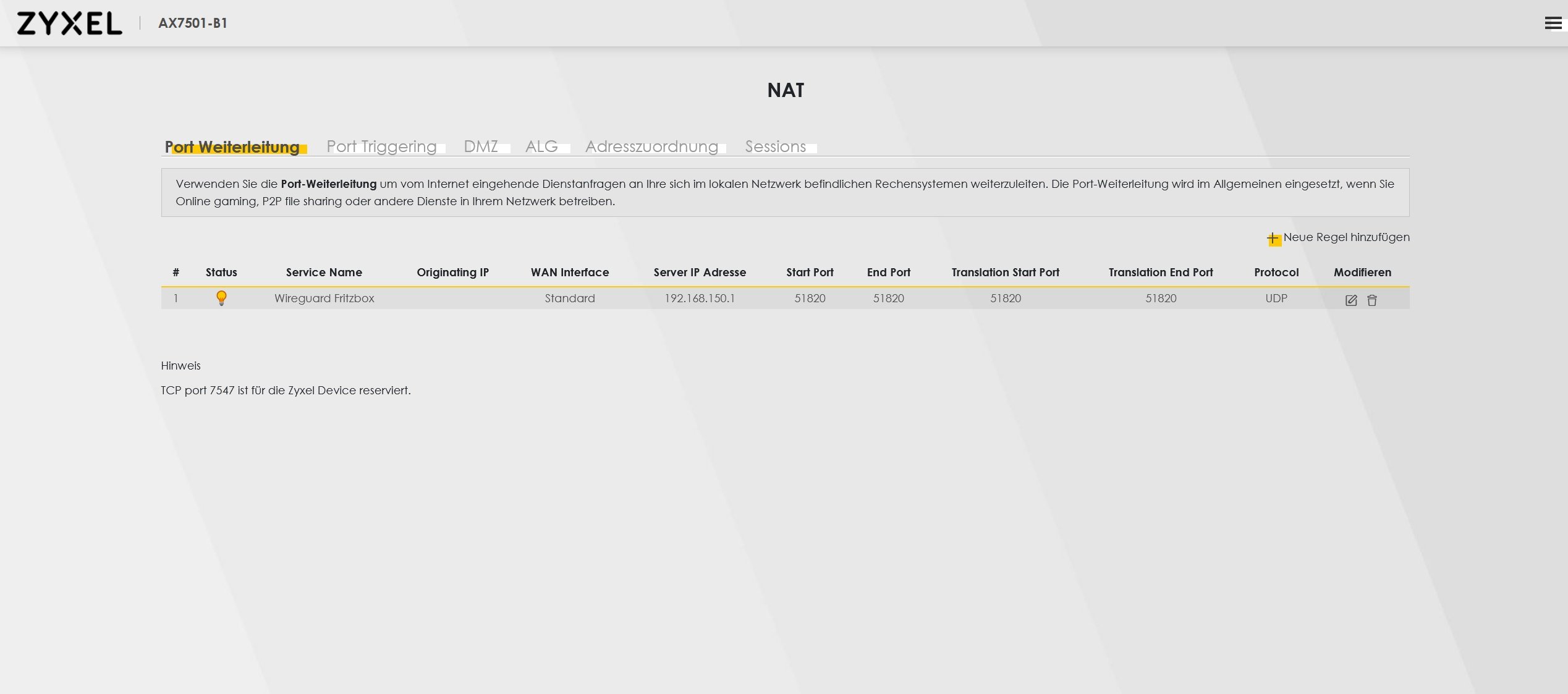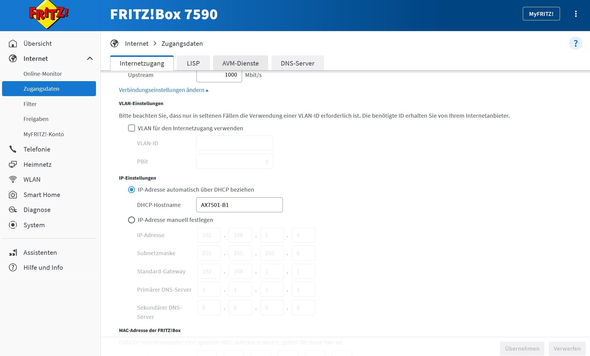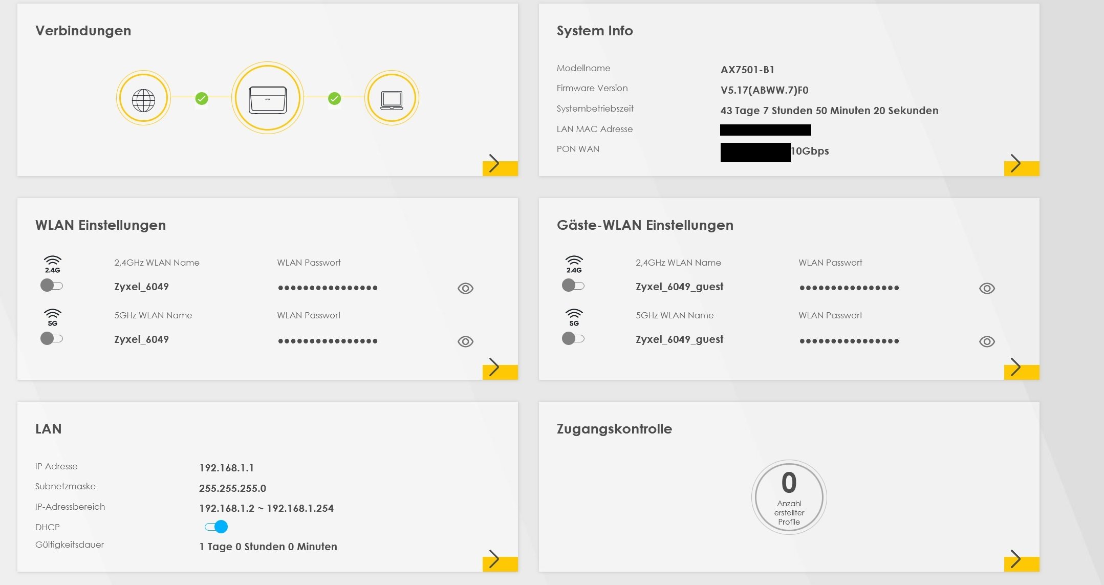 Provider Router: Zyxel AX7501-B1 / 192.168.1.1 (leider keine freie Routerwahl)