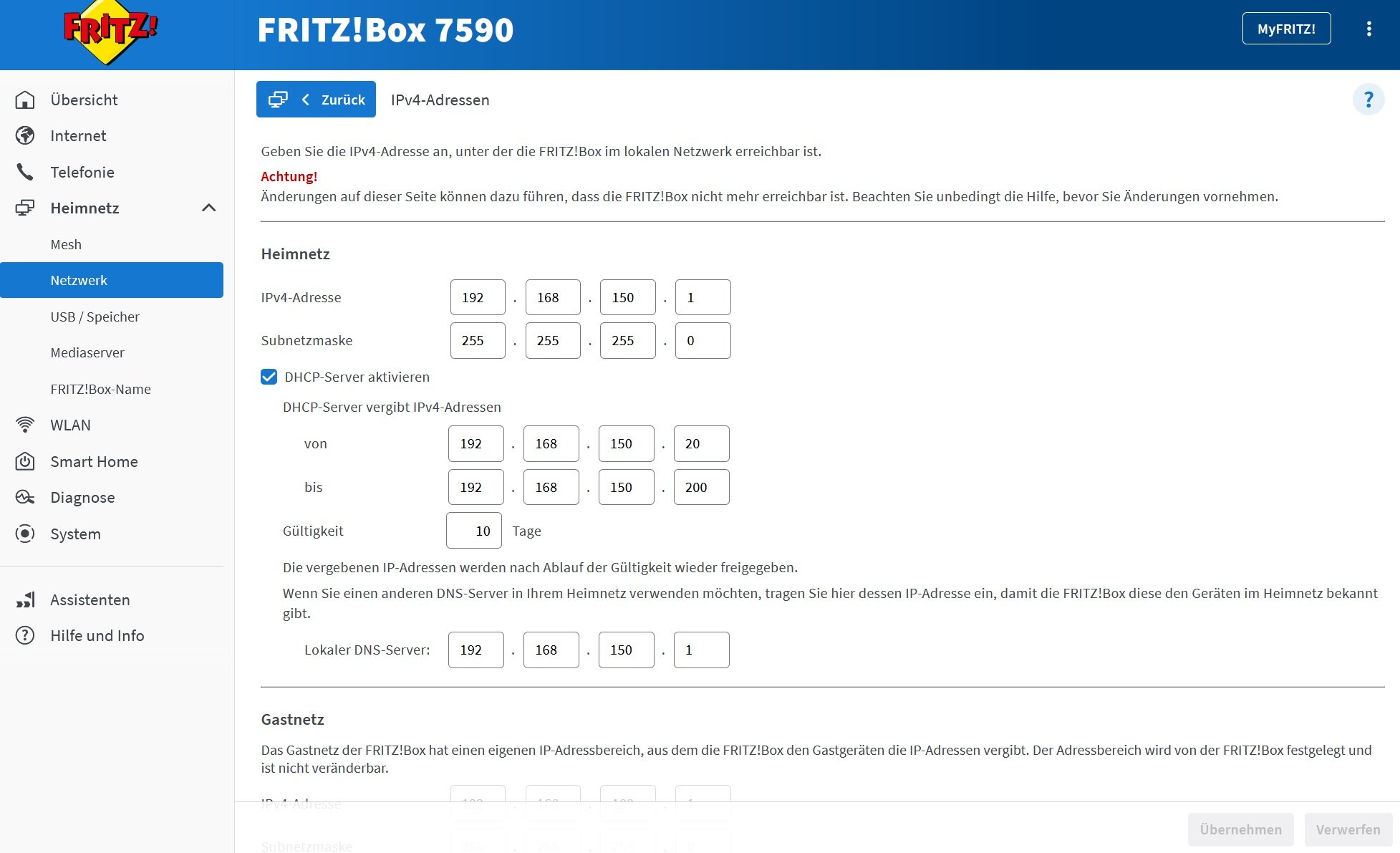 Privater Router: Fritzbox 7590 / 192.168.150.1 / OS über 7.5