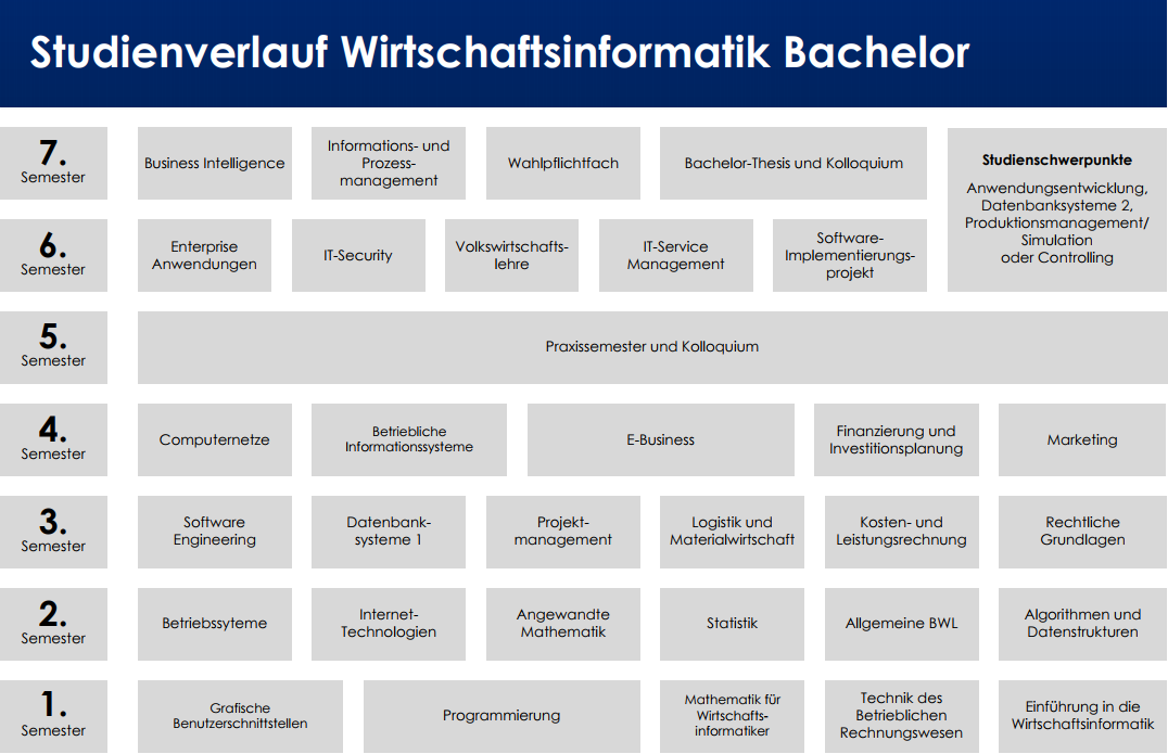 Die Wirtschaftsinformatik selbst erfolgt in der Fakultät zu einem Anteil von ca. insgesamt 35 Modulen: