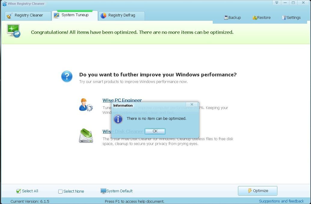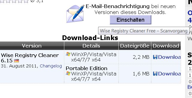 Wise Registry Cleaner Free Vers. 6.1 leider funktioniert unter Windows 7 64 Bit bei