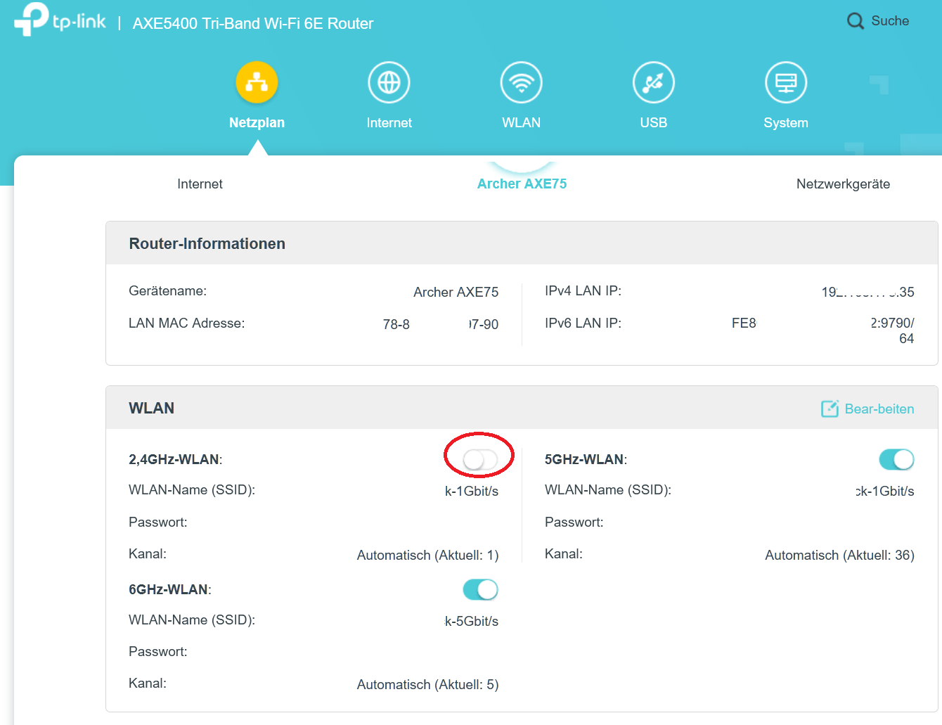 normalerweise konnte man in der Konfiguration vom TP-Link 2,4GHz nicht deaktivieren