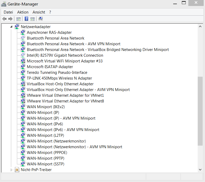 Im Gerätemanager werden mir mittlerweile schon #33 Drahtlosnetzwerkverbindungen angezeigt, wahrscheinlich weil ich den Adapter so oft neu installiert habe.