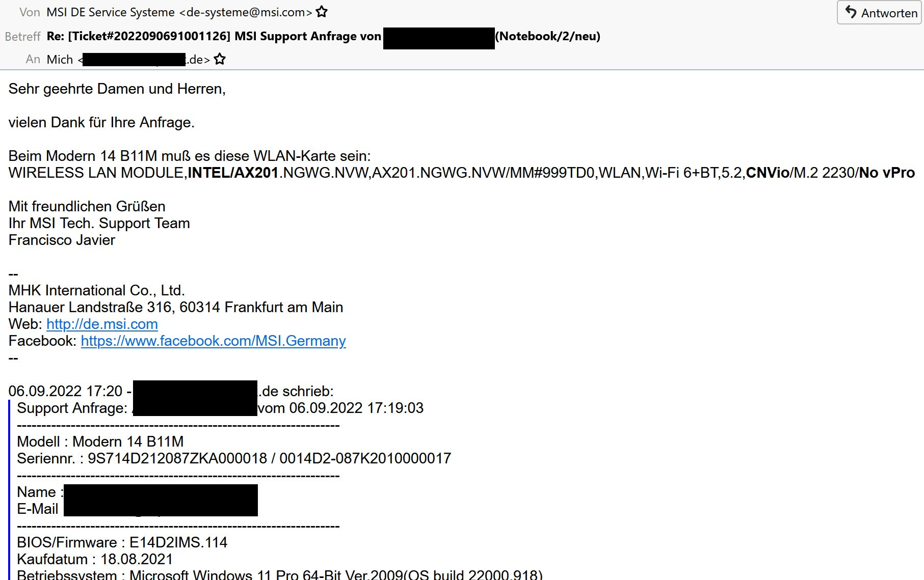 meine Tochter hat für die Schule ein MSI Modern 14 B11M-087